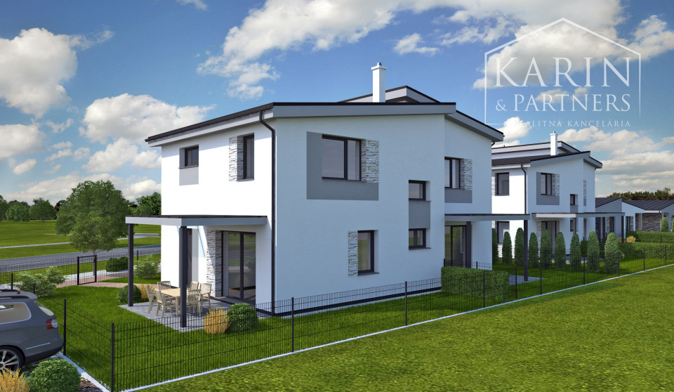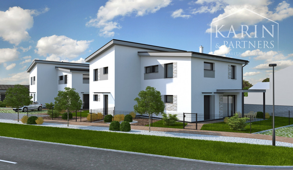 Realitná kancelária KARIN & PARTNERS ponúka na predaj moderný 3-izbový rodinný dom, súčasť dvojdomu, nachádzajúci sa v druhej etape rezidenčného projektu v obci Láb okr. Malacky
