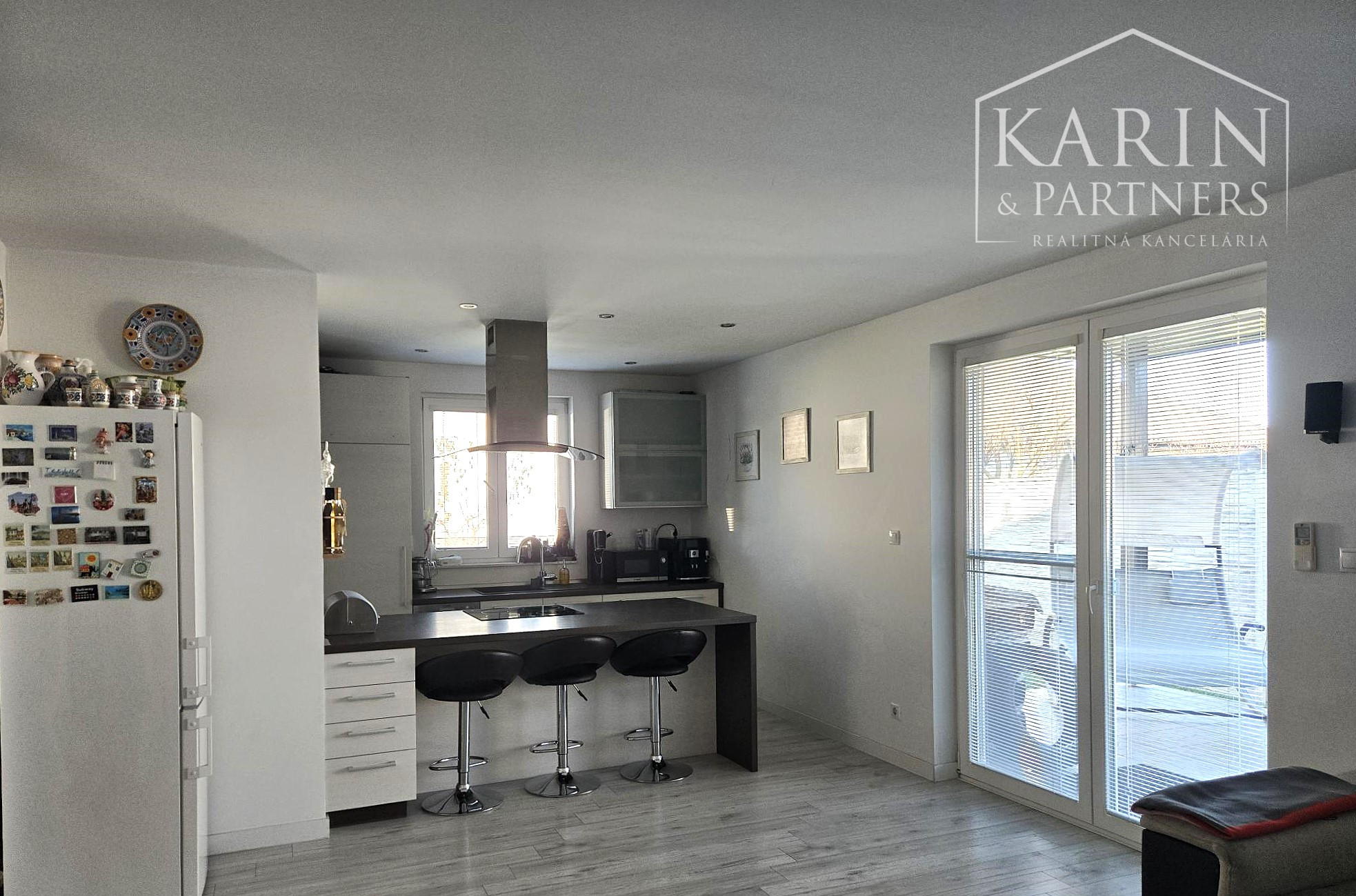 - Priestranná denná miestnosť (obývačka) prepojená s kuchyňou a výstupom na terasu
