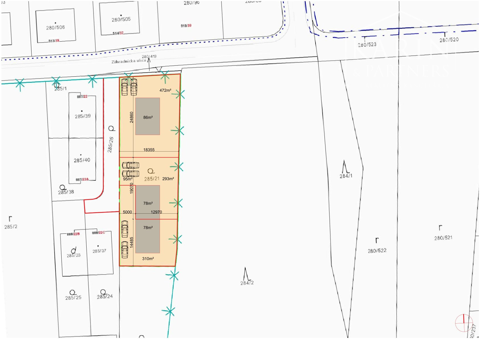 Výmera až 1 072 m2 umožňuje výstavbu 1 až 3 rodinných domov/bungalovov