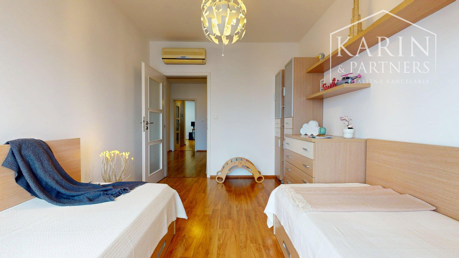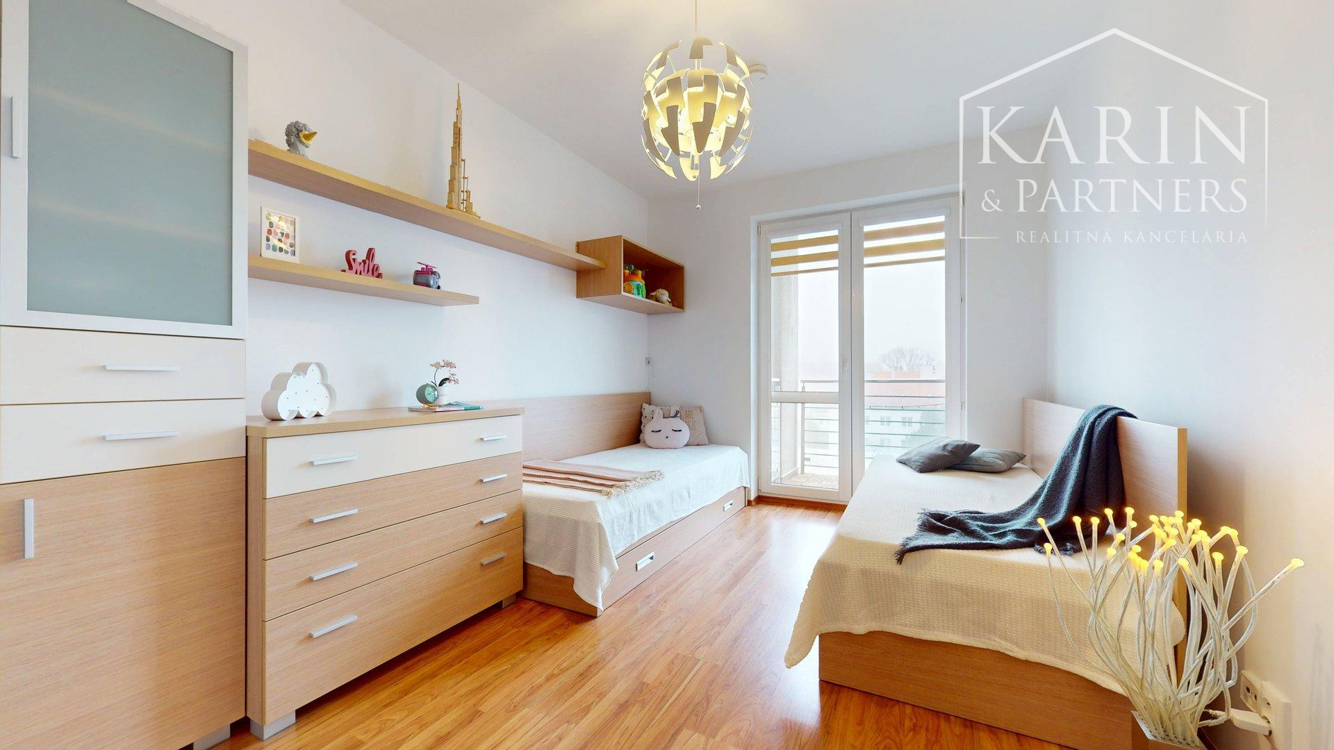 Ďalšie dve samostatné izby majú výstup na druhý balkón a smerujú do tichého vnútrobloku. Momentálne sú zariadené ako detské izby, ale môžu slúžiť aj ako pracovňa alebo hosťovská izba.