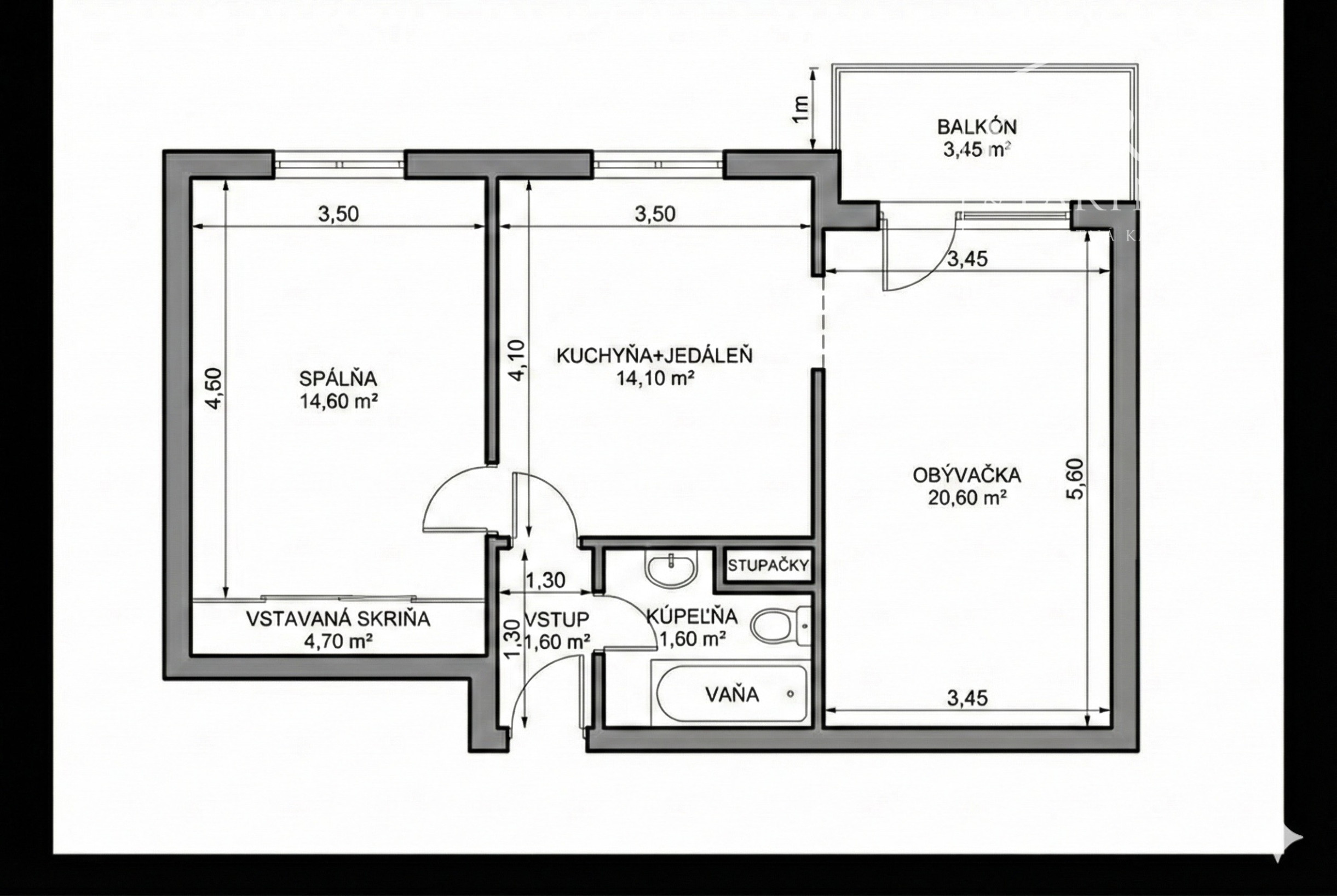 Výmera: 54,45 m², balkon 3,45 m2