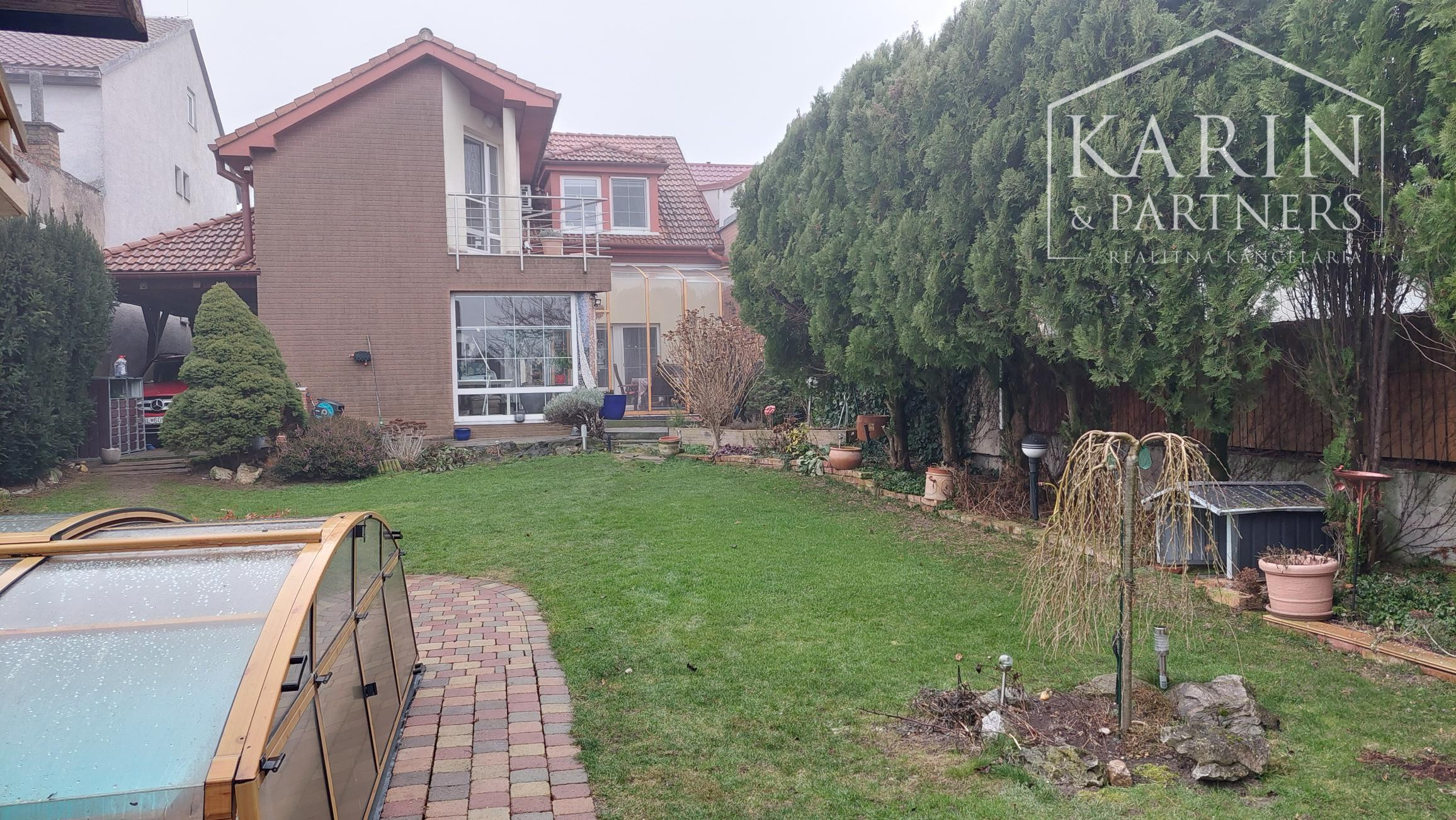 Dom stojí na slnečnom pozemku a ponúka komfortné rodinné bývanie s dostatkom súkromia, preskleným átriom, bazénom a upravenou záhradou.
