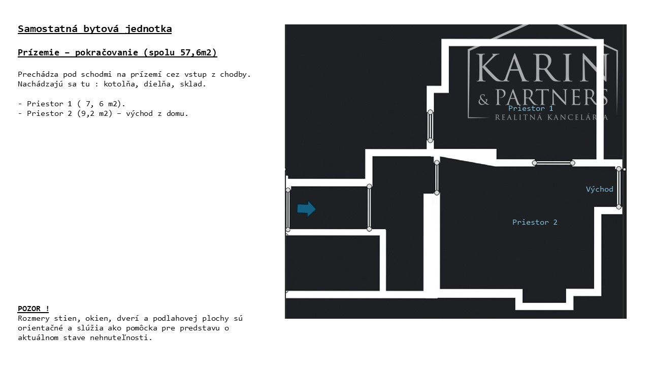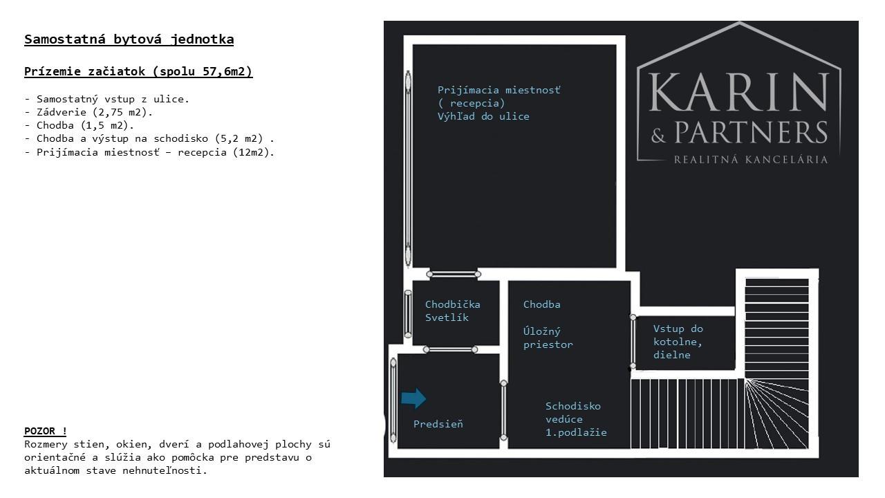 - Prízemie (spolu 57,6 m2).