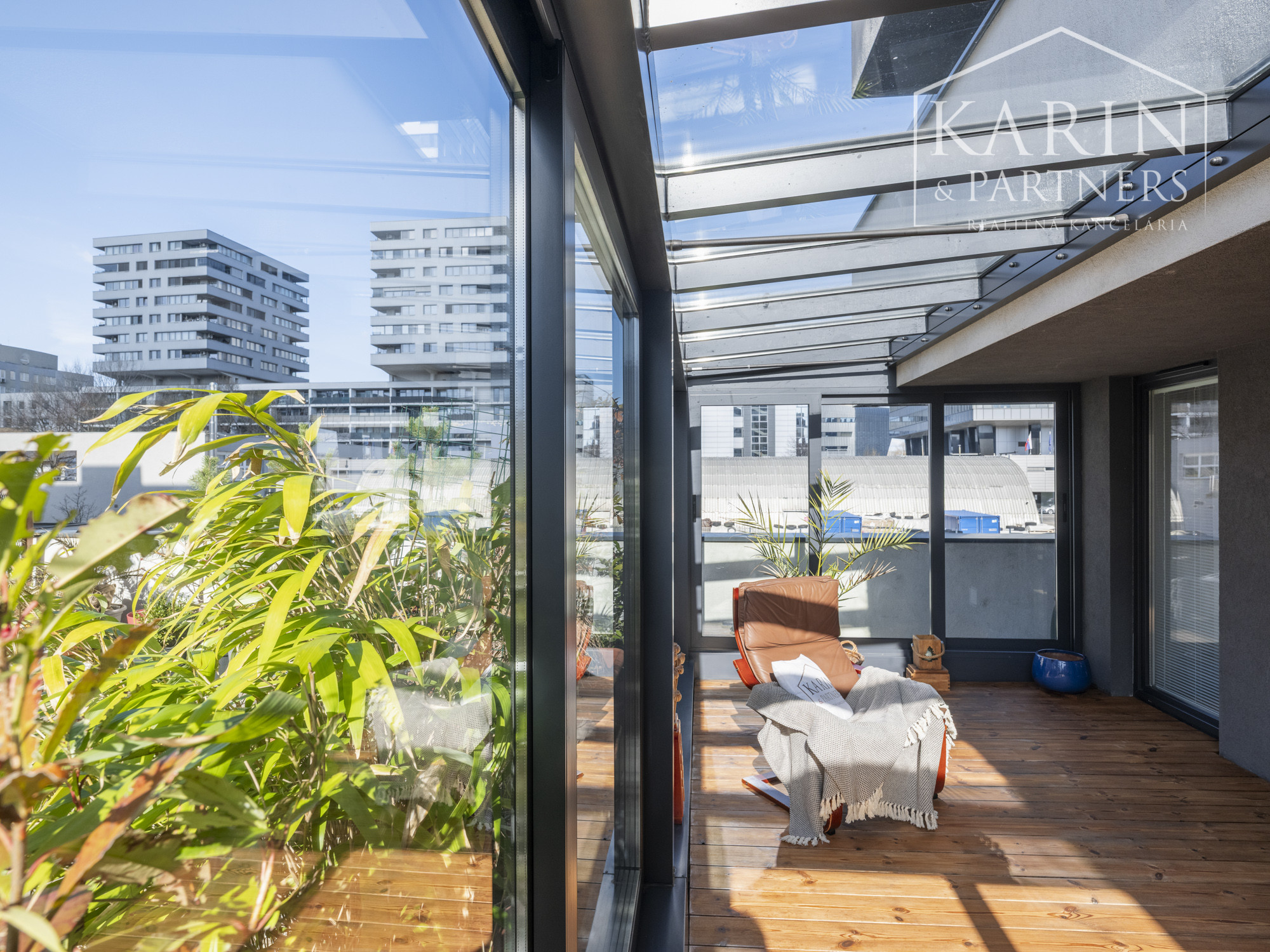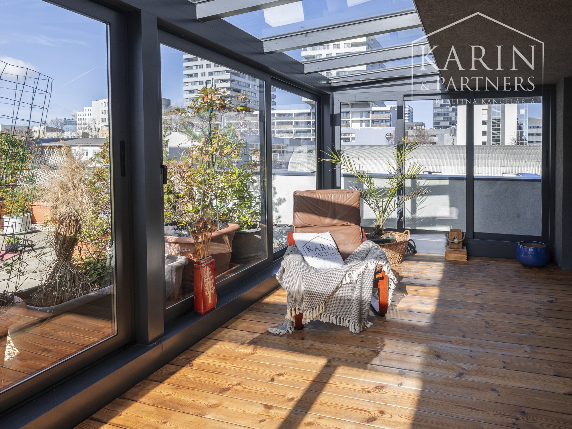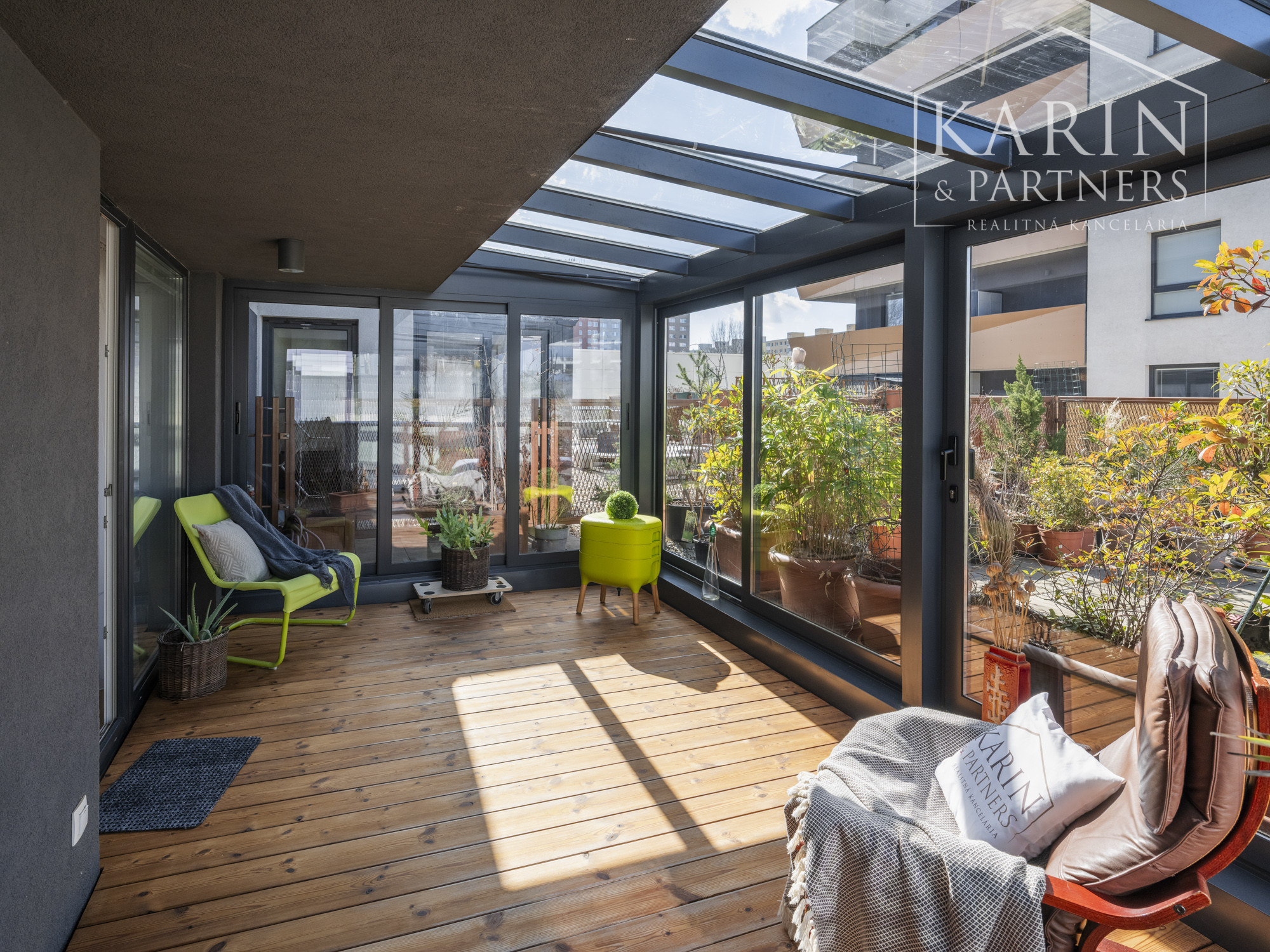 Realitná kancelária KARIN & PARTNERS ponúka vo výhradnom zastúpení na predaj 3-izbový byt s terasou, zimnou záhradou, balkónovou pavlačou, pivnicou a garážovým státím v projekte kolaudovanom v roku 2017.