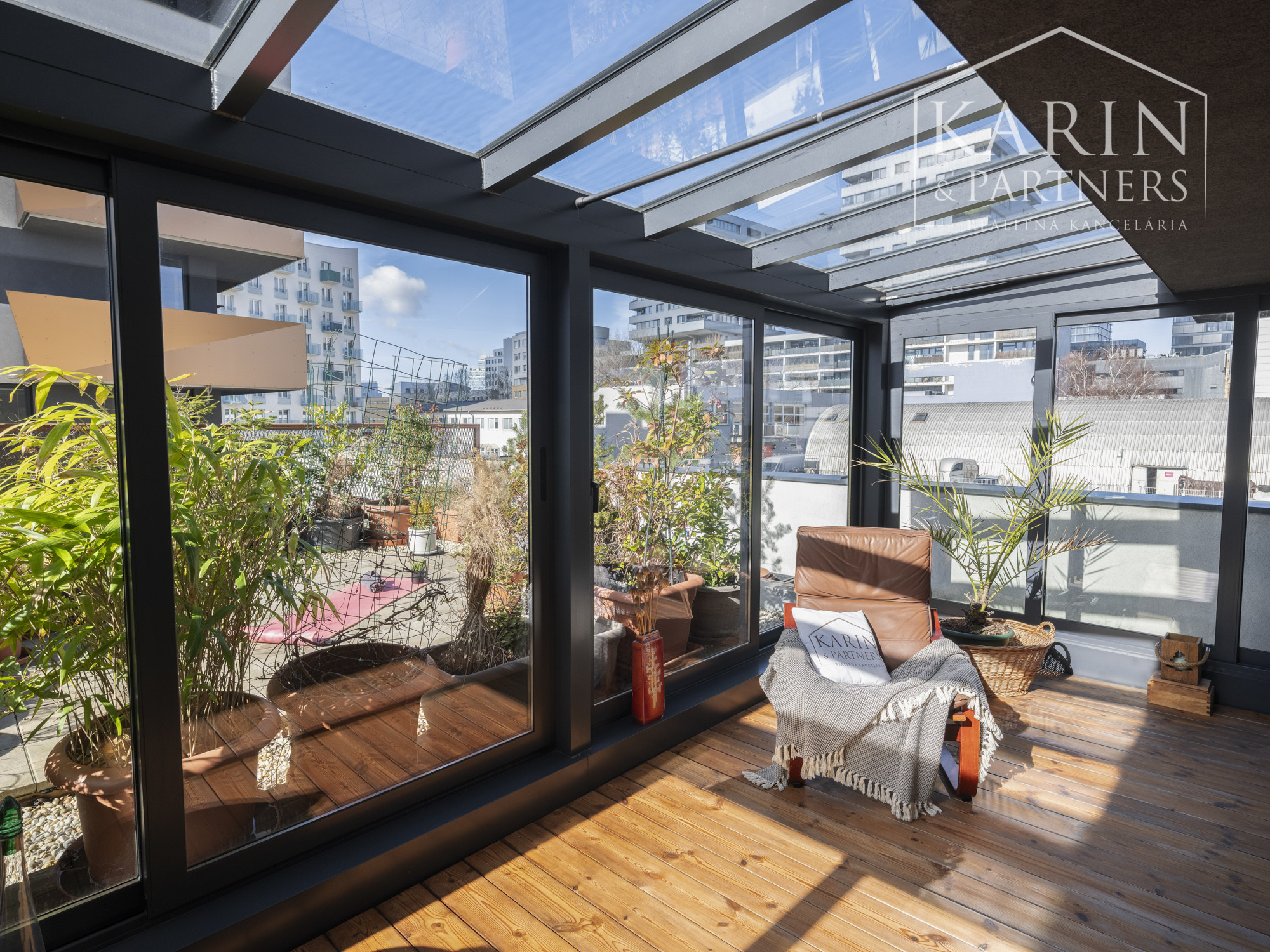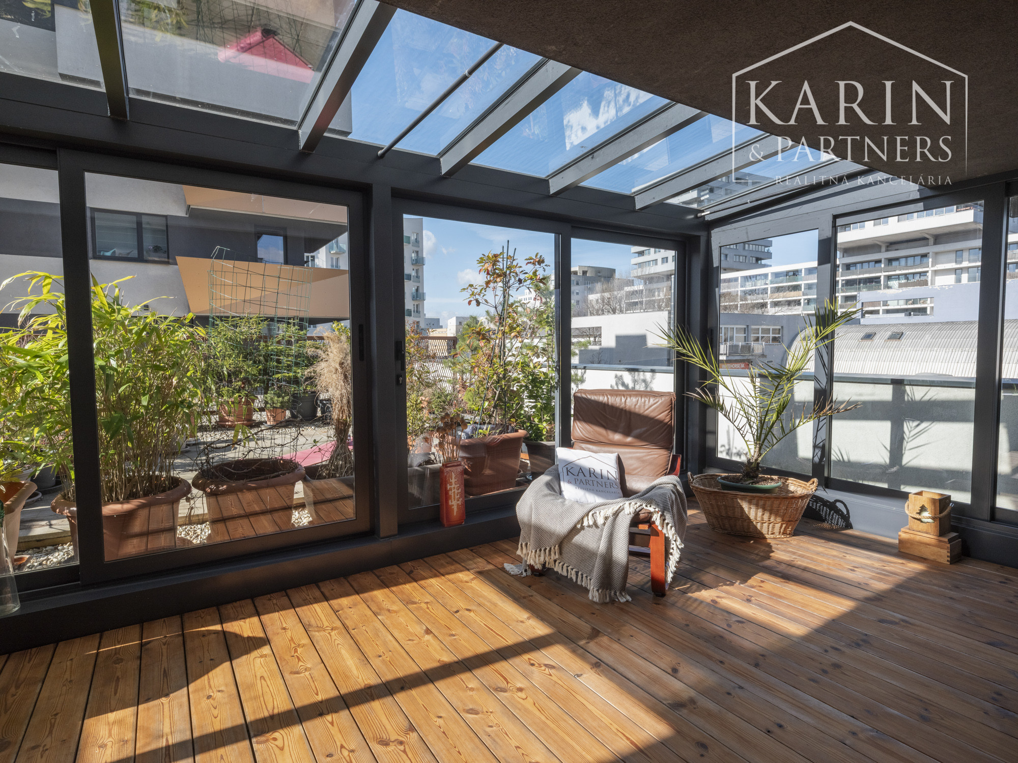 Realitná kancelária KARIN & PARTNERS ponúka vo výhradnom zastúpení na predaj 3-izbový byt s terasou, zimnou záhradou, balkónovou pavlačou, pivnicou a garážovým státím v projekte kolaudovanom v roku 2017.