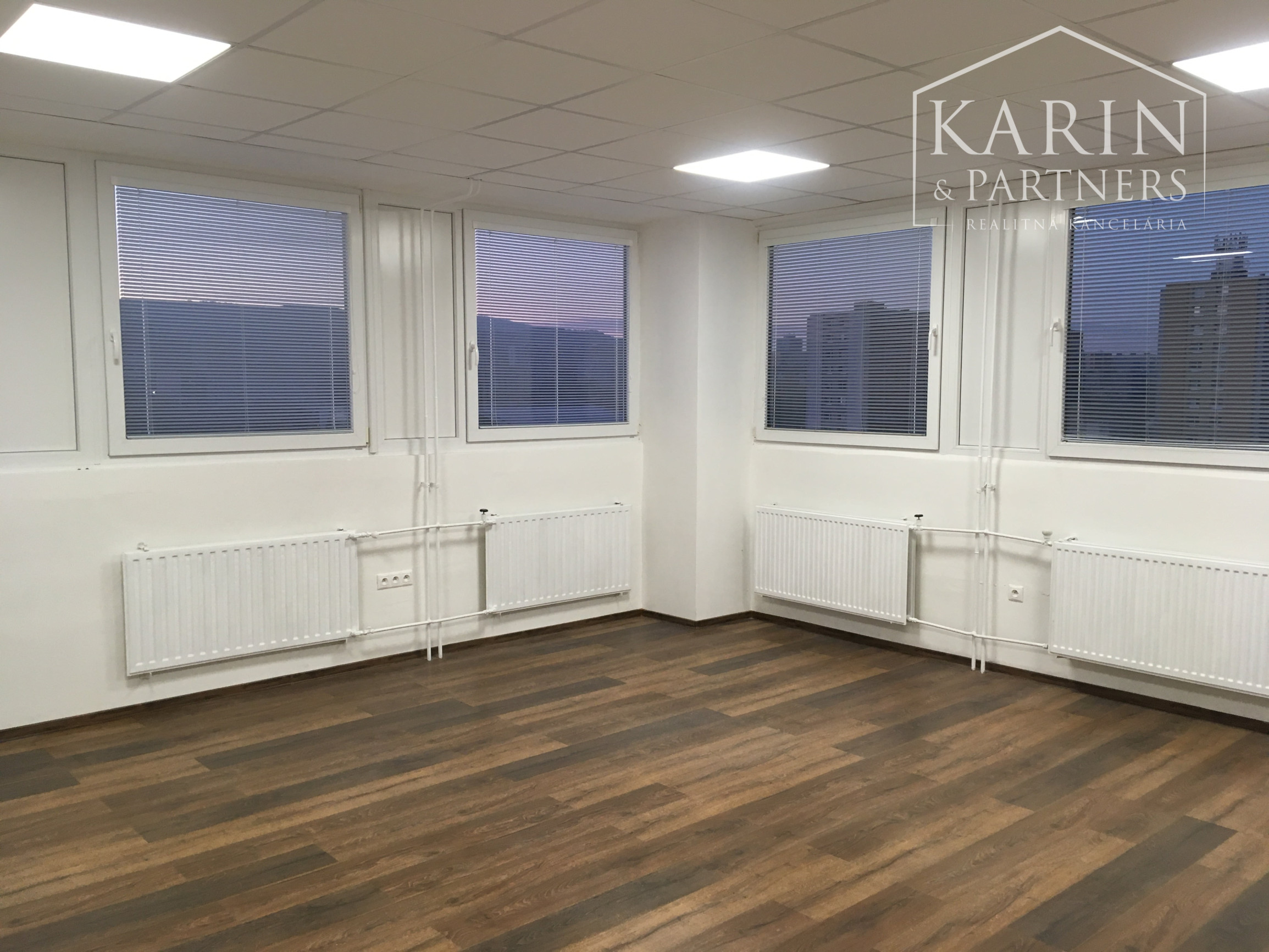 Karin & Partners ponúka na prenájom 2 samostatné klimatizované kancelárie 19m2 a 25m2, so spoločnou chodbičkou cca 2m2, Zateplená administratívna budova s dvoma výťahmi. Vybavenie: 2ks bivalentná klimatizácia, sadrokartónové predsadené a akusticky izolované steny, laminované dvere, plávajúce podlahy/ koberce, stropné akustické podhľady, plastové okná /žalúzie/, štruktúrovaná kabeláž. Výška stropov od 2,65m do 2,80m. Mužské a ženské WC pre všetky kancelárie na jednotlivých podlažiach a kuchynka. Parkovanie pred budovou. Recepcia a non stop prístup do budovy. Blízka dostupnosť na diaľničný obchvat všetkými smermi. Z kancelárií je pekný výhľad na okolité lesy Koliby a Devínskej Kobyly. Cena priestoru: 619.-€ /m2 /mesiac vrátane služieb a 2ks bivalentnej klimatizácie. Spotreba elektriny v kancelárii a bivalentnej klimatizácie sa účtuje na základe reálnej spotreby. V cene nájmu je ústredné radiátorové vykurovanie, voda a upratovanie spoločných priestorov. Optické internetové pripojenie je v réžii nájomcu. Ceny sú uvedené bez DPH. DPH sa pripočítava len u platcov DPH. Kontakt: Mgr. Valentovič +421 948 283 434 valentovic@karinpartners.sk
