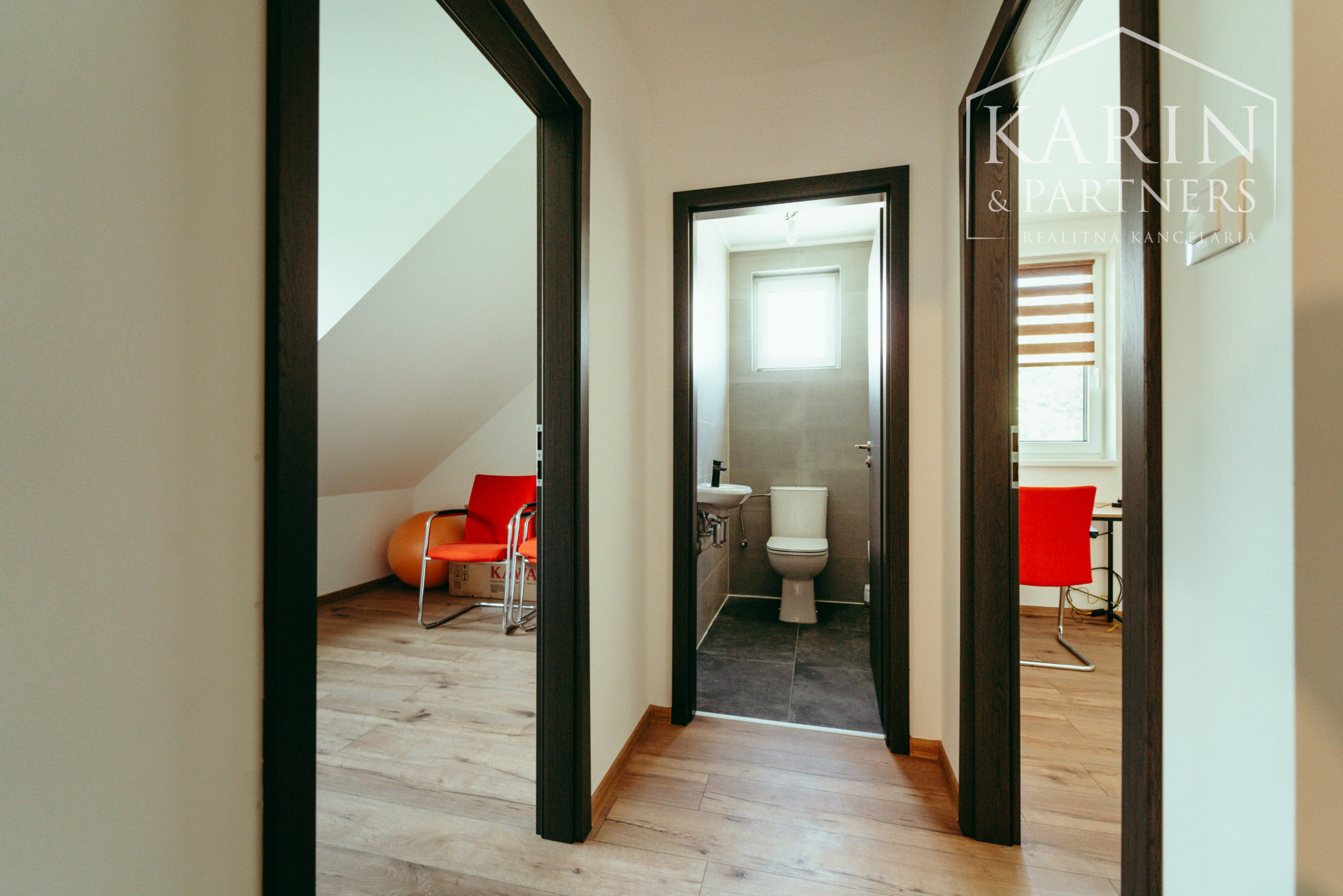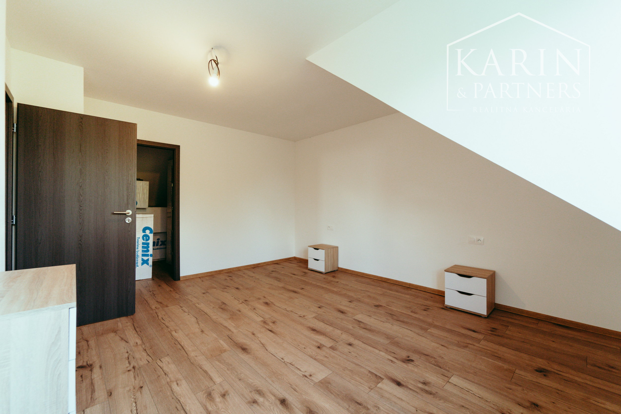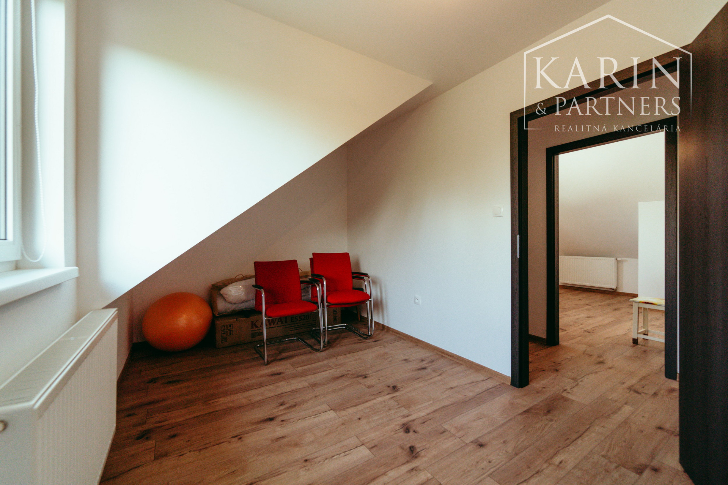 - dispozícia poschodia: chodba, spálňa s veľkým šatníkom (môže slúžiť ako ďalšia izba), dve detské izby, samostatné WC s umývadlom