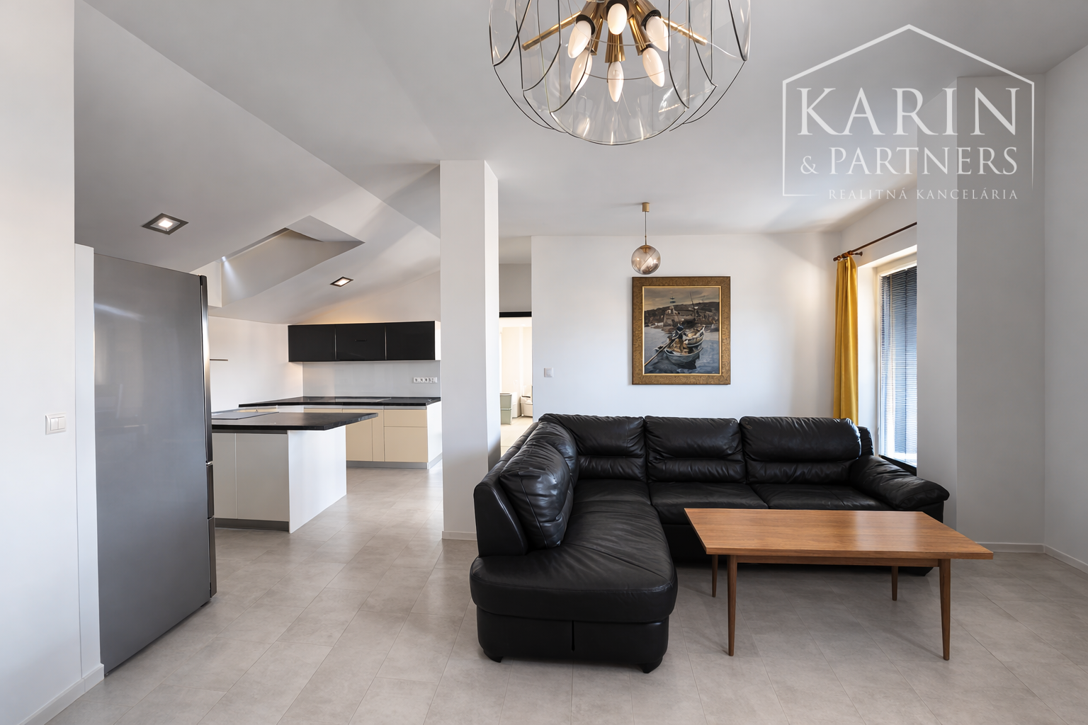 Denná izba s kuchyňou tvorí príjemný obytný priestor. Z obývacej izby je výstup na priestrannú terasu s výmerou 15.8 m², ktorá rozširuje obytný priestor a poskytuje ideálne miesto na oddych.