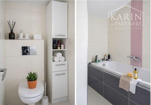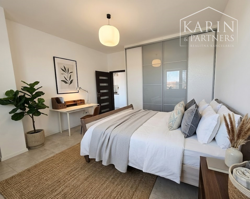 V byte sú použité prémiové materiály – plastové okná, vnútorné žalúzie, sieťky, laminátové podlahy, obklady, dlažba, sanita.