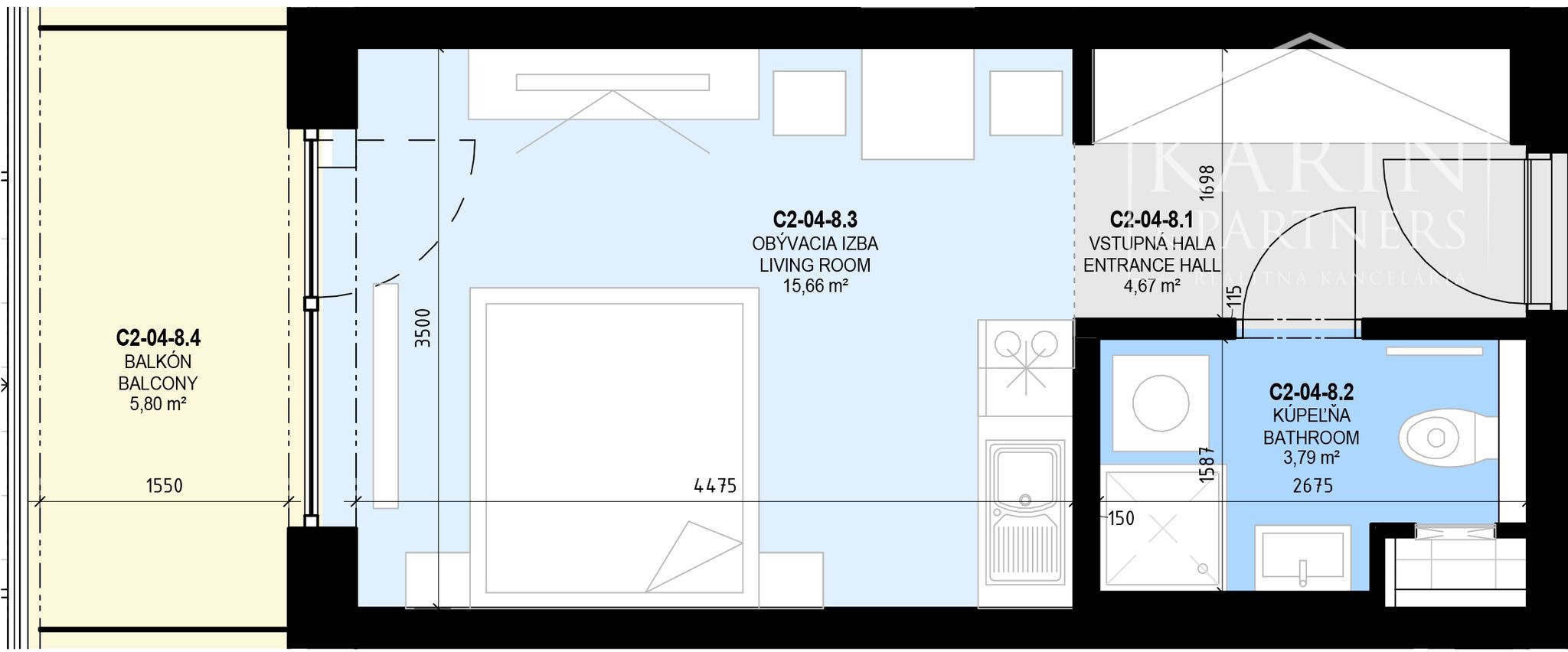 Výmera: úžitková plocha: 29,75 m2 (z toho balkón 5,8 m2)