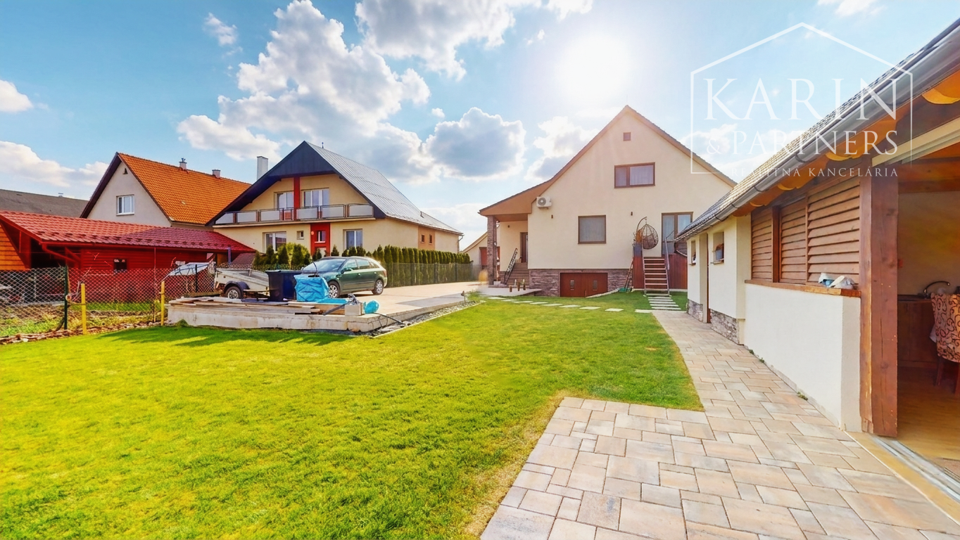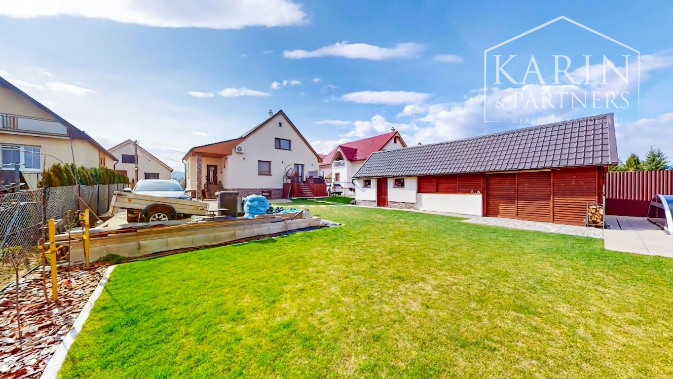 Vonkajší priestor je navrhnutý pre absolútny relax a bezúdržbovosť. Okolie domu lemuje kvalitná dlažba a o dokonalý trávnik sa stará automatický závlahový systém z dažďovej vody. Milovníkov letných grilovačiek nadchne veľký krytý altánok na posedenie, ktorý má už kompletne zavedenú vodu, elektrinu aj odpad. Domáci majstri ocenia samostatnú murovanú budovu, ktorá slúži ako dielňa. Altánok aj dielňa majú súpisné číslo a sú evidované na liste vlastníctva, spolu s domom tvoria zastavanú plochu 163 m2, pozemok 637 m2. Súčasťou predaja je aj projekt na garáž. Z pozemku je výhľad na Strážnu vežu Vartovka - posledná zachovalá na Slovensku. Pozemok je oplotený.