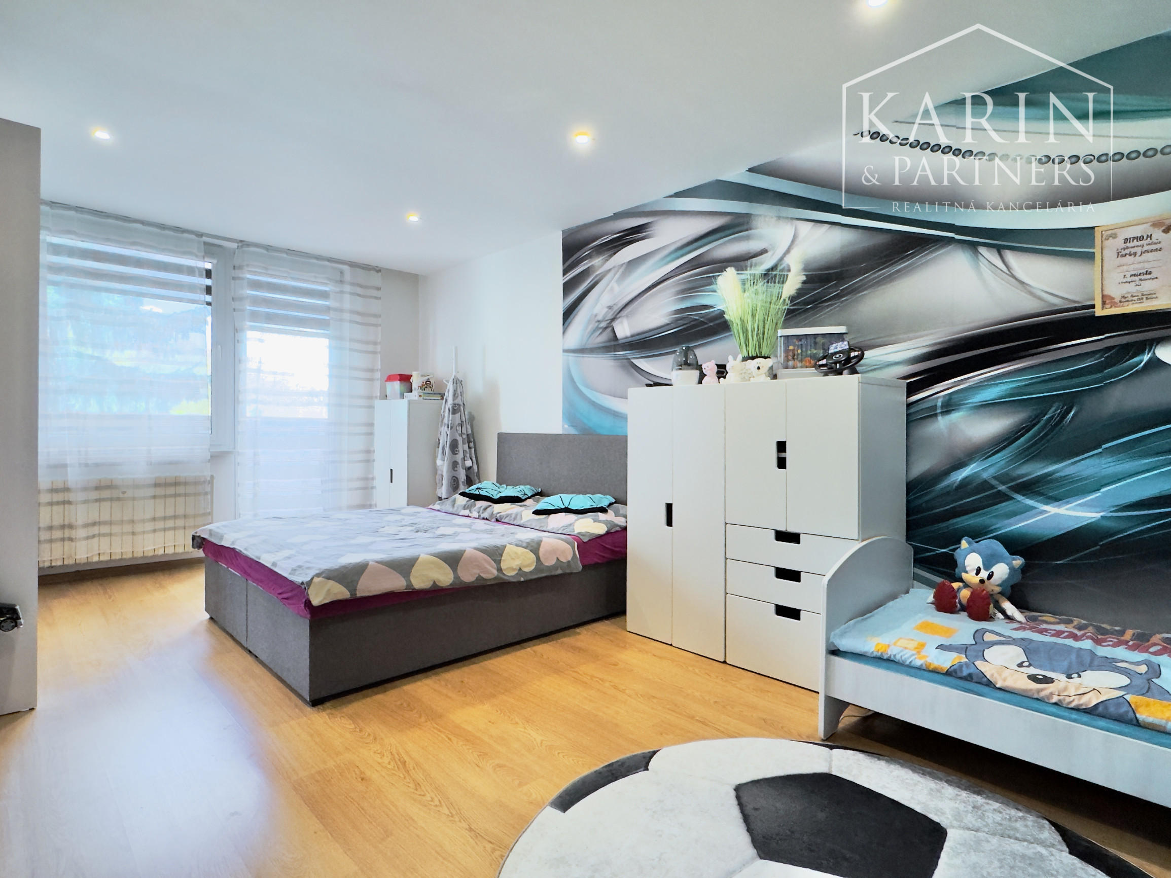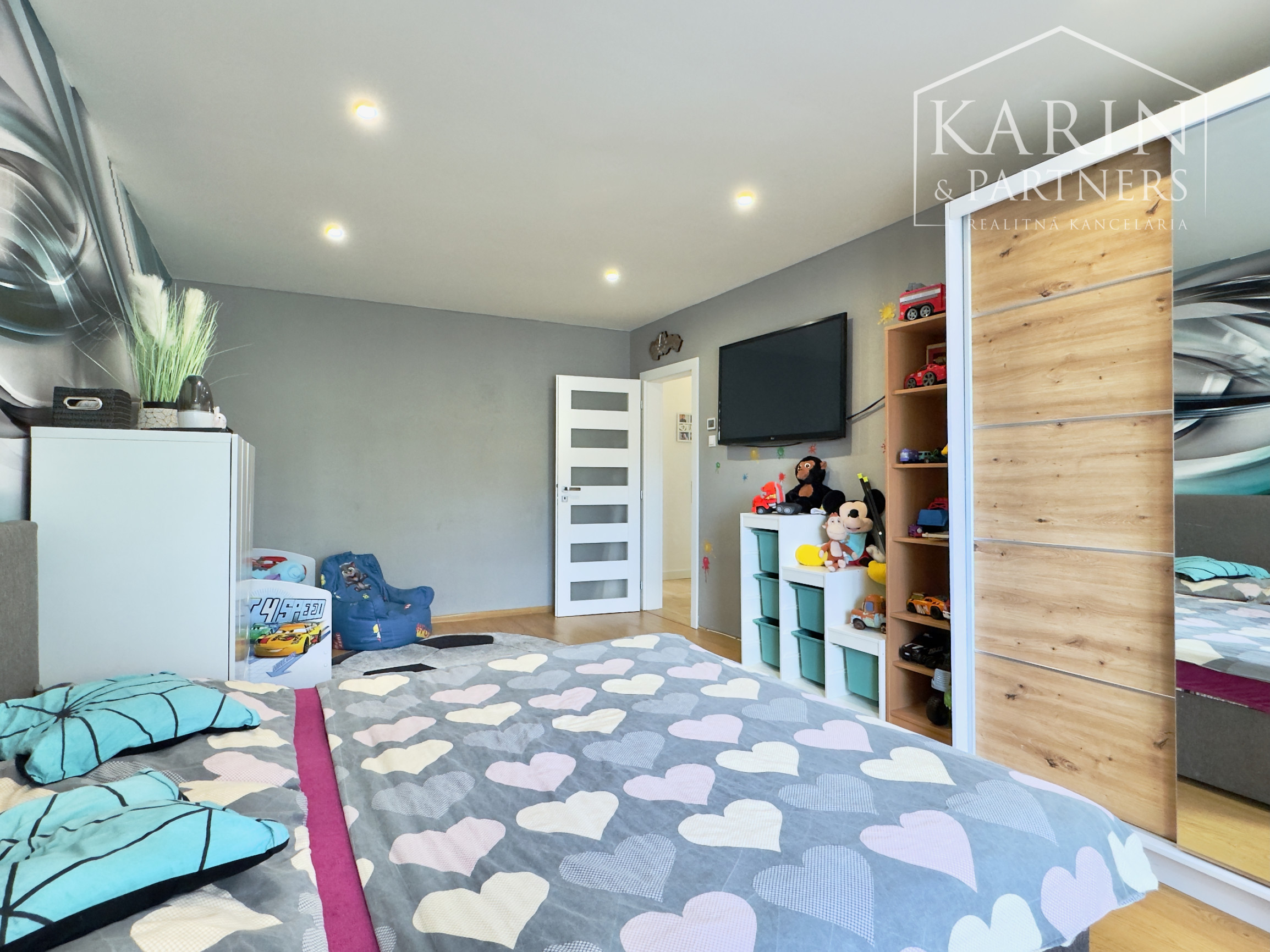 - Izby: Položené nové podlahy a dlažby, znížené stropy s moderným bodovým osvetlením. V detskej izbe sa nachádza vstavaná skriňa a dizajnové tapety, ktoré dodávajú priestoru charakter.