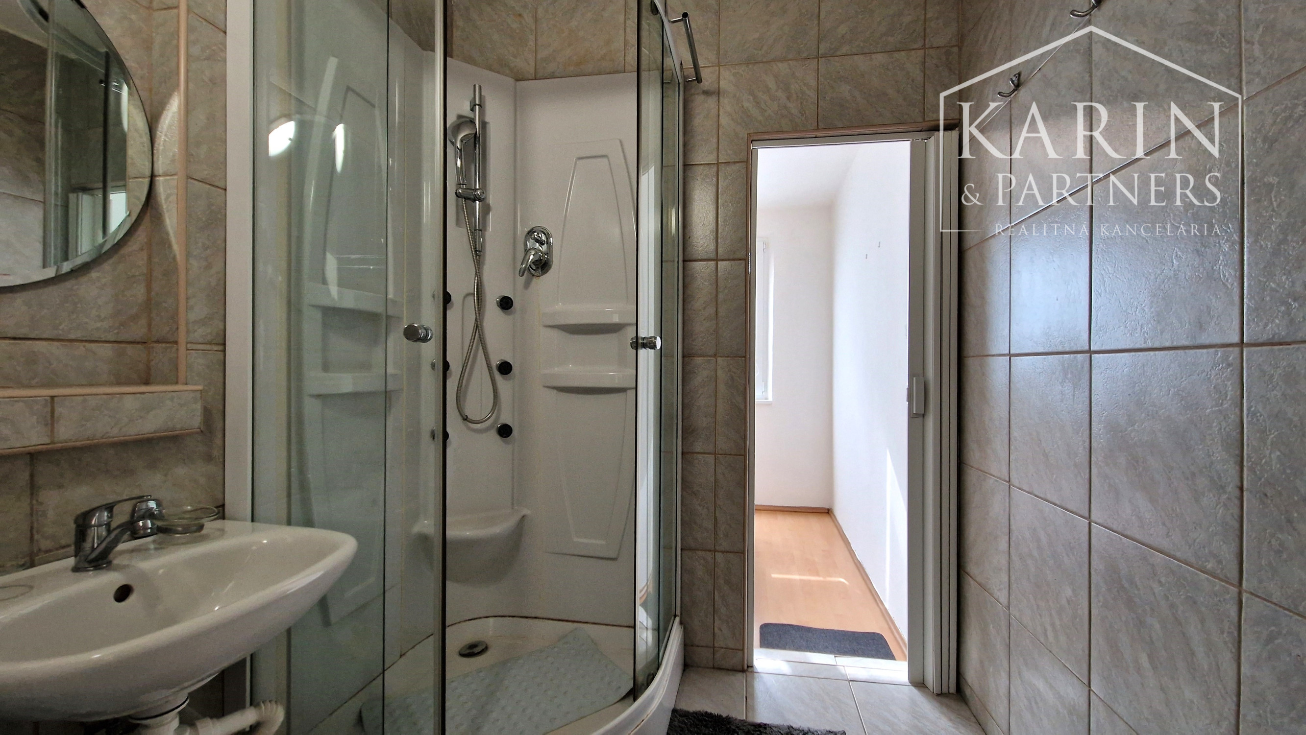 - kúpeľňa so sprchovým kútom a práčkou